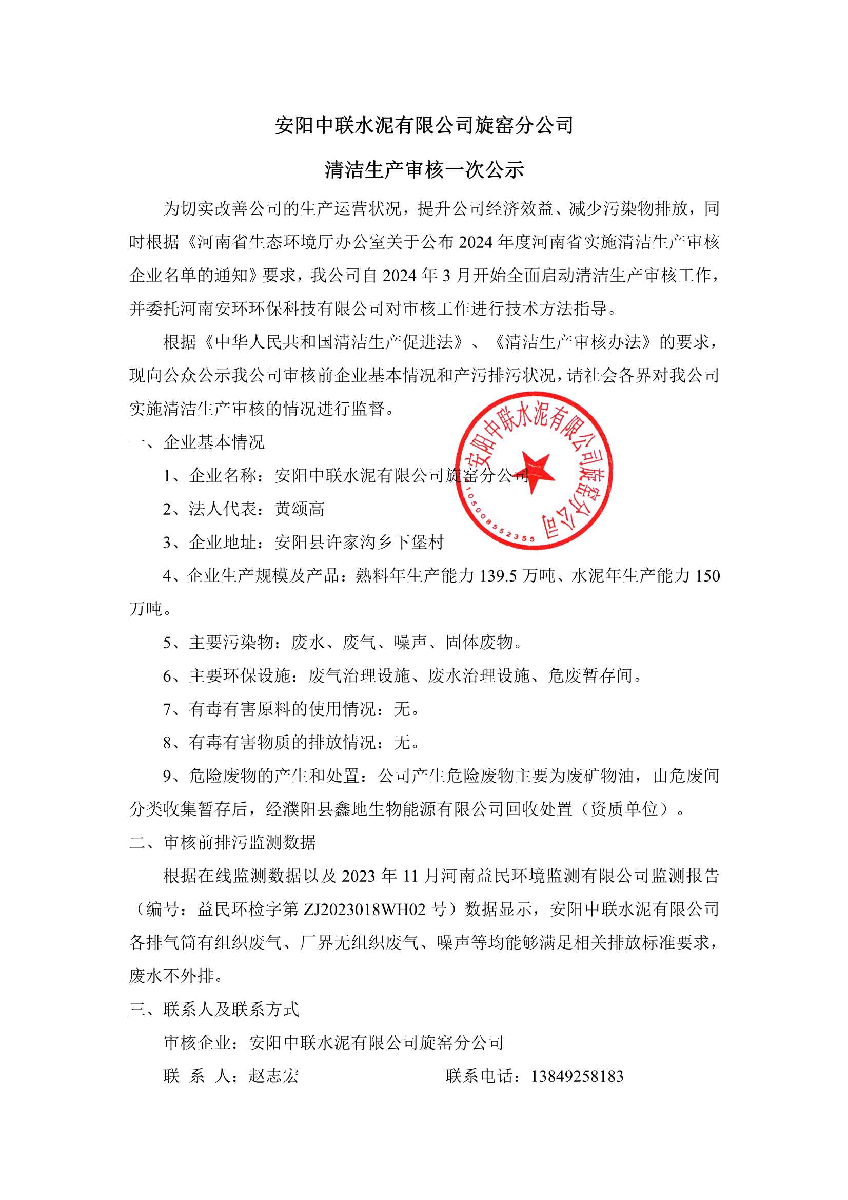 安陽(yáng)中聯(lián)水泥有限公司旋窯分公司突發(fā)環(huán)境事件應(yīng)急預(yù)案公示